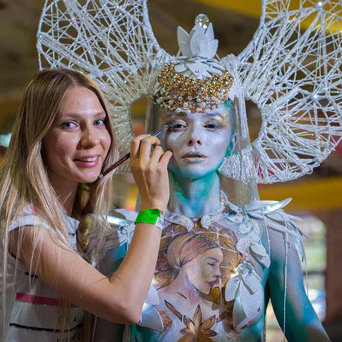 She offers face and body painting for parties, makeup, special effects, creative makeup, and other beauty entertainment, including full-body art.