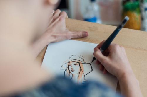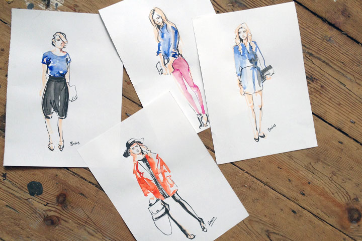 Willa can create her stunning fashion illustrations both digitally on the iPad and through traditional hand-drawn techniques.