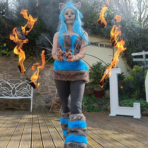 Based in Birmingham, our female fire artist is available for various engagements, including themed parties, weddings, and corporate events.