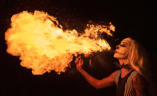 Dazzle your guests with an enthralling display of fire in an exceptional and dramatic performance by our skilled Female Fire Artist.