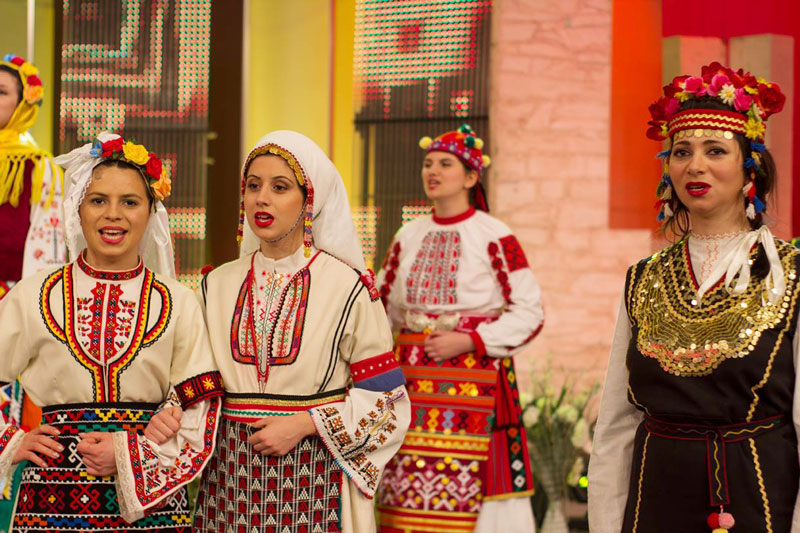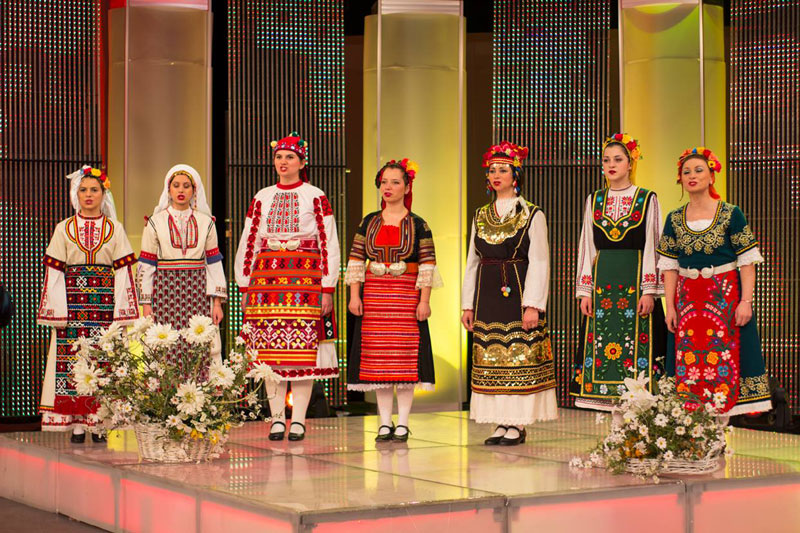 Adorned in stunning traditional Bulgarian costumes, each outfit is distinct and unique. Known for their vibrant colors, headscarves, and floral accents, these costumes elevate every performance.