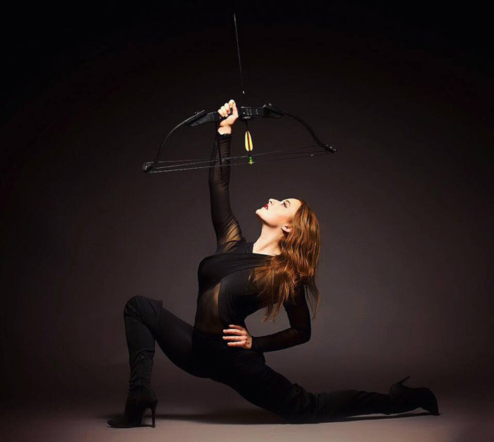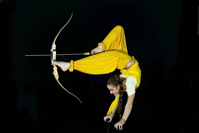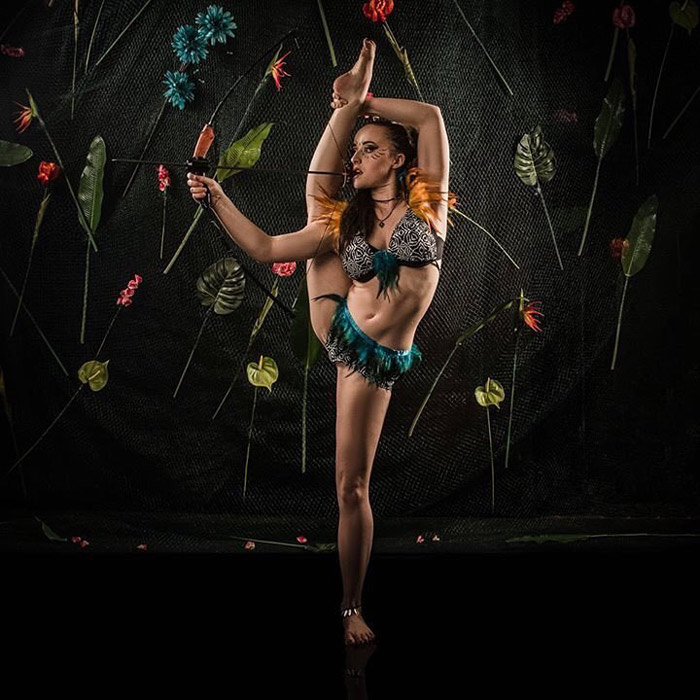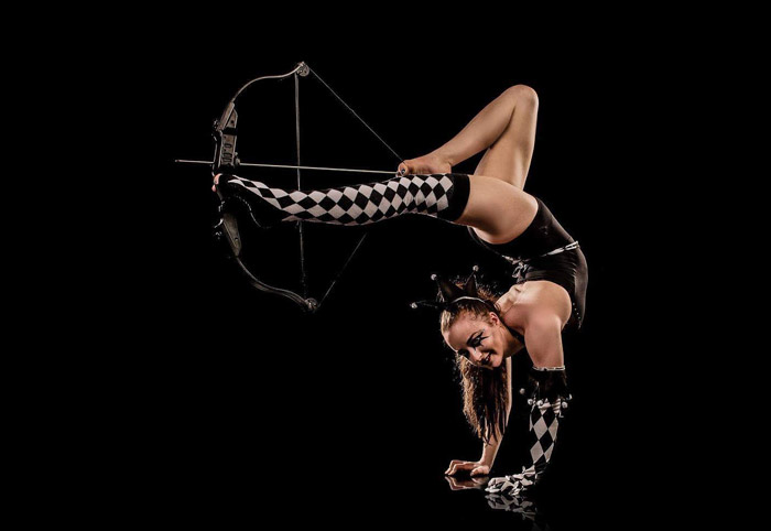 Our Female Foot Archer is also available as an acrobat or contortionist as well as an aerial performer.