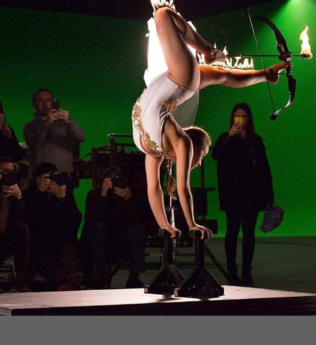 A former gymnast for Great Britain, the acrobatic archer made her debut on Britain's Got Talent, earning high praise from the judges and being dubbed a "bendy hot cupid!". She has since showcased her talent at various private and corporate events around the globe. The archery contortionist has also appeared on multiple TV shows, in the press, and even featured in the blockbuster Wonder Woman and Frankenstein Chronicles TV series.