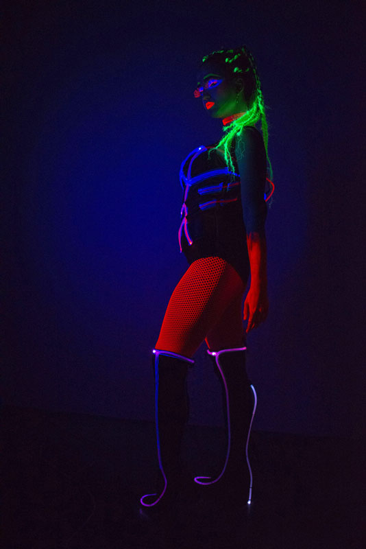 This technology-infused dance act features an all-female troupe adorned in electro-luminescent UV costumes and makeup. Their fully programmable ultraviolet light wire outfits can be enhanced with any LED props and accessories upon request.