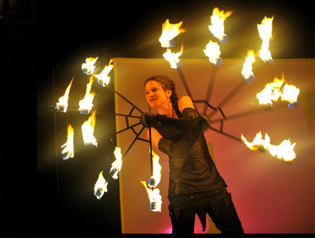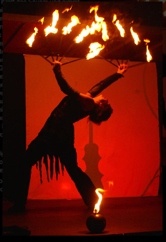 This show is centered around the captivating interaction between high-caliber fire artistry and various shadow play sequences. A specially designed screen seamlessly transitions between the individual fire show’s captivating stories and surreal images.