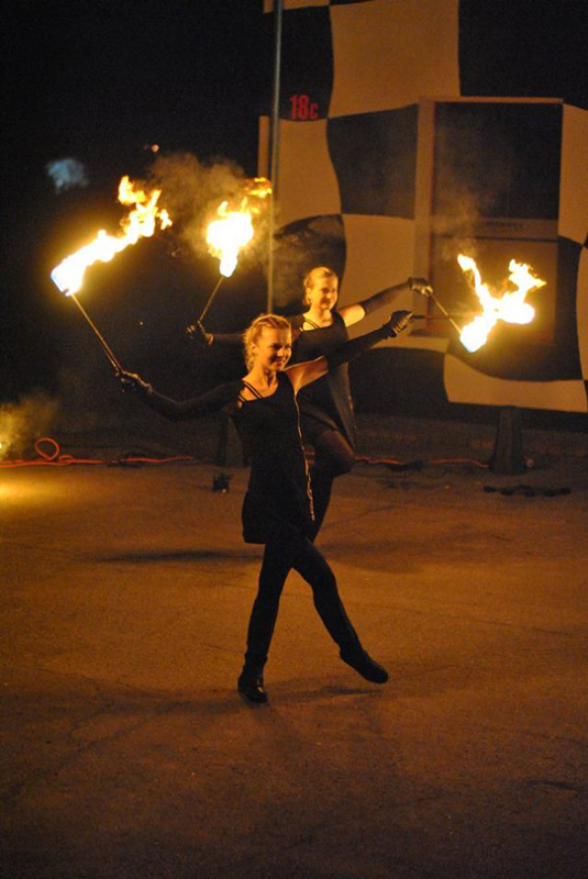 As seen in the pictures above, our fire performers frequently perform outdoors and under dark conditions. While these conditions are highly recommended, our dancers are more than willing to adapt their choreographies to different types of venues and times of the day.