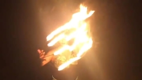 Experience the breathtaking fire immolation act, where a performer ignites themselves in flames—a feat typically executed by professional stuntmen.