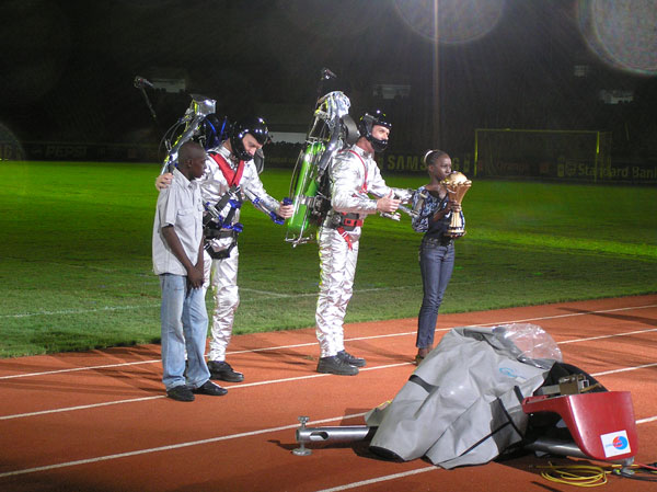 This highly skilled team has been delivering safe, high-quality performances to audiences worldwide for over 30 years! A seasoned pilot, performing with the Rocketbelt since 1981, personally trains each new pilot. Once they're 'show ready,' each pilot is prepared to deliver a thrilling, perfectly choreographed show full of jaw-dropping maneuvers!