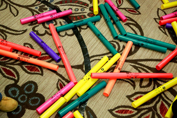 During the learning process and leading up to the finale, your group must listen carefully and react quickly to the colors displayed on an LED screen to ensure that they each play the right colored tube at just the right moment!