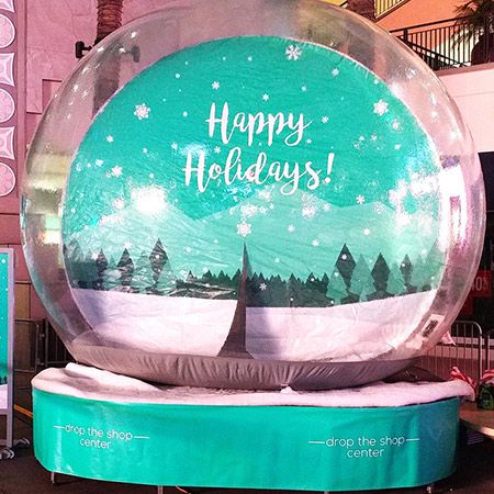 Choose your preferred backdrop effect for inside your giant snow globe, with a variety of customizable options including brand logos!