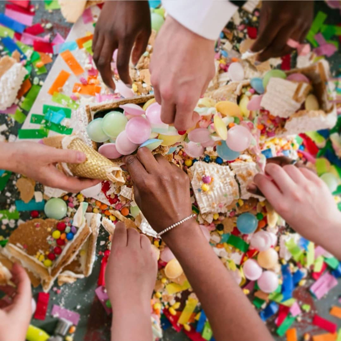 The wedding cake alternatives also include biscuit cakes and Danish and Norwegian kransekakes. The gingerbread installations are perfect for corporate events and interactive workshops.