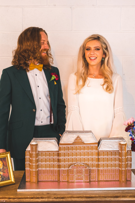 Previous Gingerbread Wedding Cake concepts she has created include a Wes Anderson-inspired Grand Budapest Hotel, a gingerbread replica of the wedding venue, a castle inspired by the iconic film Labyrinth, an Ancient Mesopotamian theme, and a cake featuring gingerbread boxes filled with photo booth props! The possibilities for alternative wedding cakes are truly endless.
