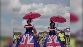 Wearing lavish royal blue gowns, elegant top hats, and carrying vibrant red parasols, our Great Britain-themed roaming act stands out effortlessly.