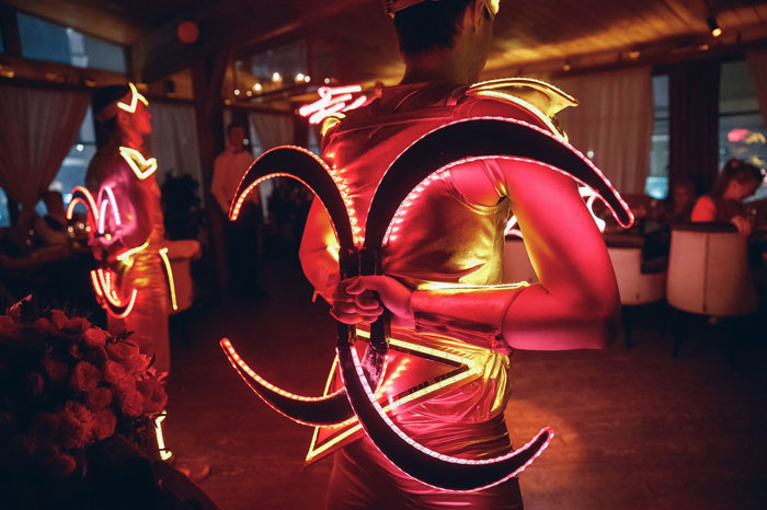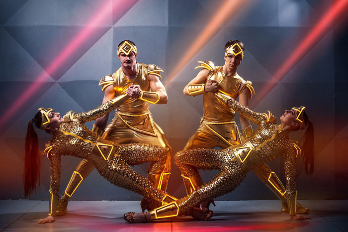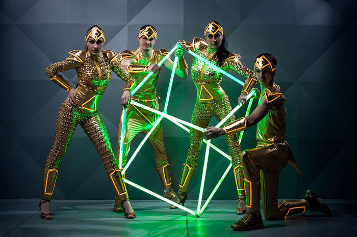 Delight your guests with luxurious entertainment from our exceptional Gold LED Show Russia. Adorned in elegant and futuristic gold costumes, the LED circus performers will captivate your audience with an impressive array of LED props, synchronized choreographies, and a truly unique LED show experience.