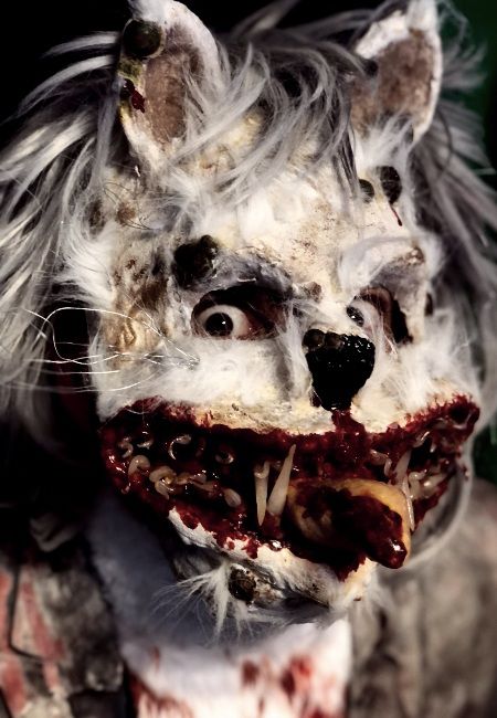 The characters include an infected clown, a menacing bunny, a zombie janitor, and a crazed cat. Every costume showcases exceptional attention to detail.