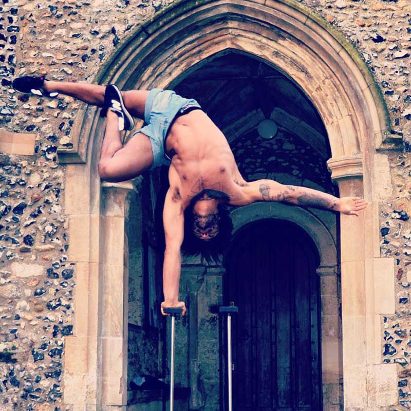 Our London-based hand balancer can deliver solo hand-balancing acts or collaborate for a duo performance with a female partner.