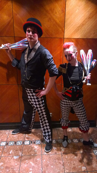 Understanding how to create an exhilarating atmosphere and truly captivate audiences, each circus show features vibrant costumes and a dramatic soundtrack. Whether you are seeking roaming jugglers for a festival, circus entertainment for corporate functions, or themed walkabout jugglers for a private party, this versatile duo will ensure your special occasion is unforgettable!