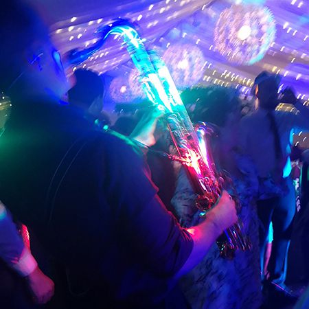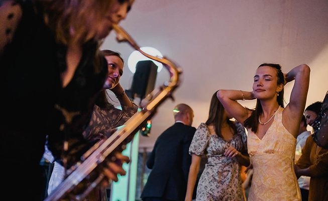 For evening parties, the ambience can change to a more upbeat vibe with the saxophonist on the dancefloor with a disco playlist or alongside a DJ