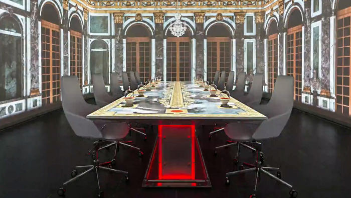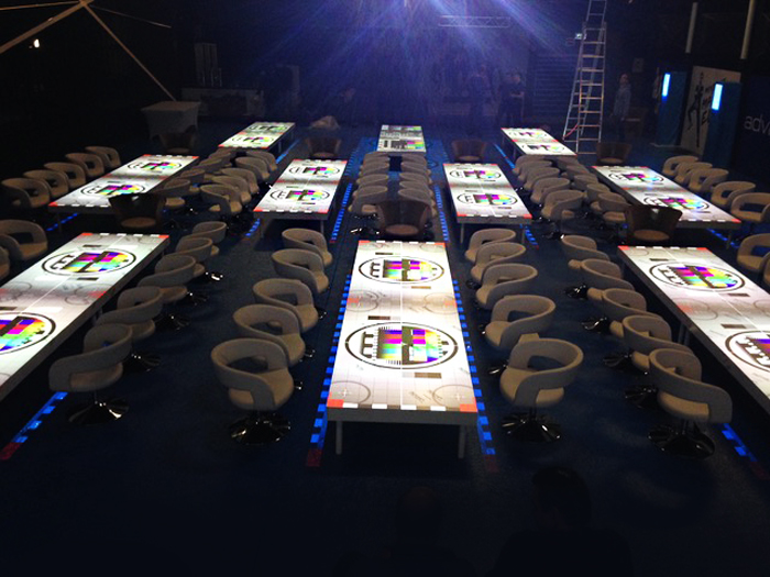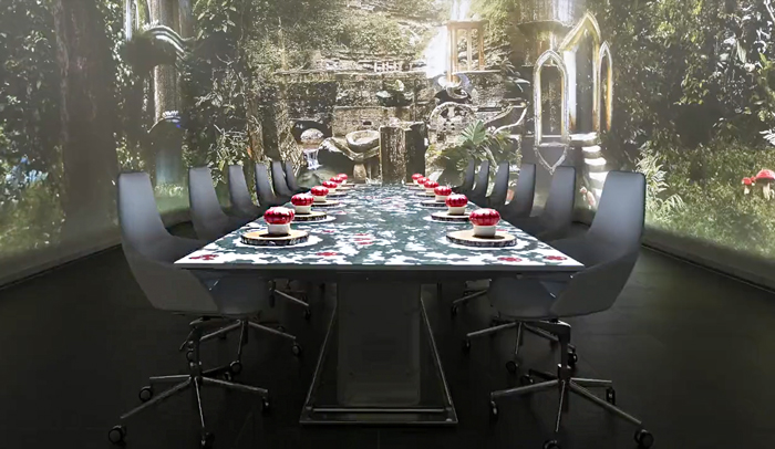 For a fully immersive experience, we can encircle the table with LED screens, making the animations truly extraordinary. This setup is perfect for immersive dinner table mapping, transporting your guests to any imaginary world or location of your choice, with animations flowing from the screens to the table.