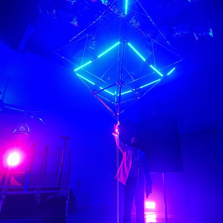 Enhance your event lighting and atmosphere with our Indoor Pyramid Suspension, providing a distinctive blend of visual and auditory art.