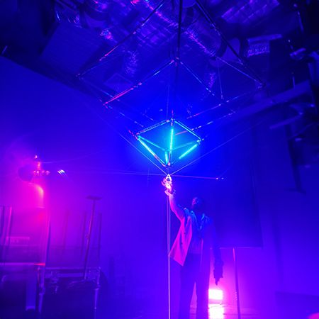 Our Indoor Pyramid Suspension artist has crafted this mesmerizing suspended light sculpture to elevate venue decor.