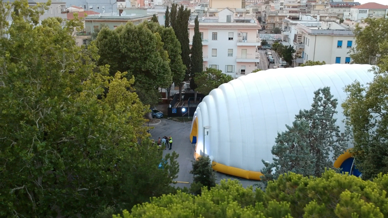 Quick to set up and easy to move, this spacious inflatable dome can be installed rapidly.
