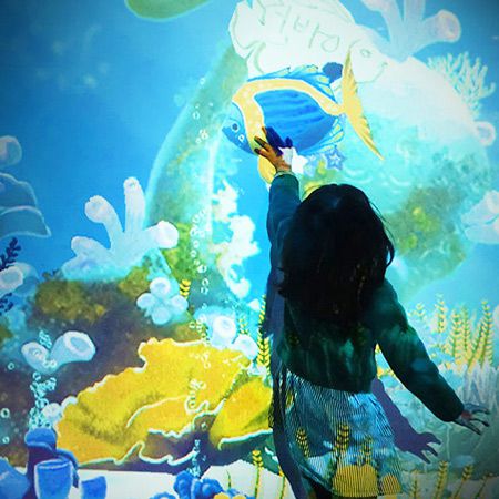 Children can draw a sea creature of their choice, scan it into the machine, and see it come to life on the interactive wall.