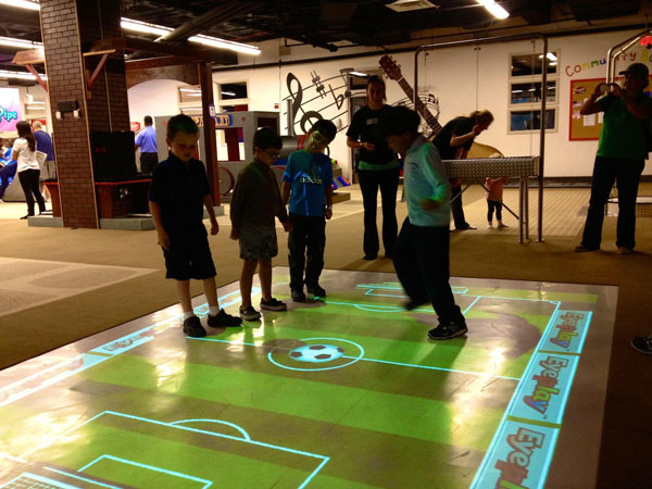 Our interactive floor projector can be programmed to display interactive logos or images, as well as sports games like football, hockey, and soccer. If you seek a fully customized experience for your event, contact our entertainment specialists for more inspiration.