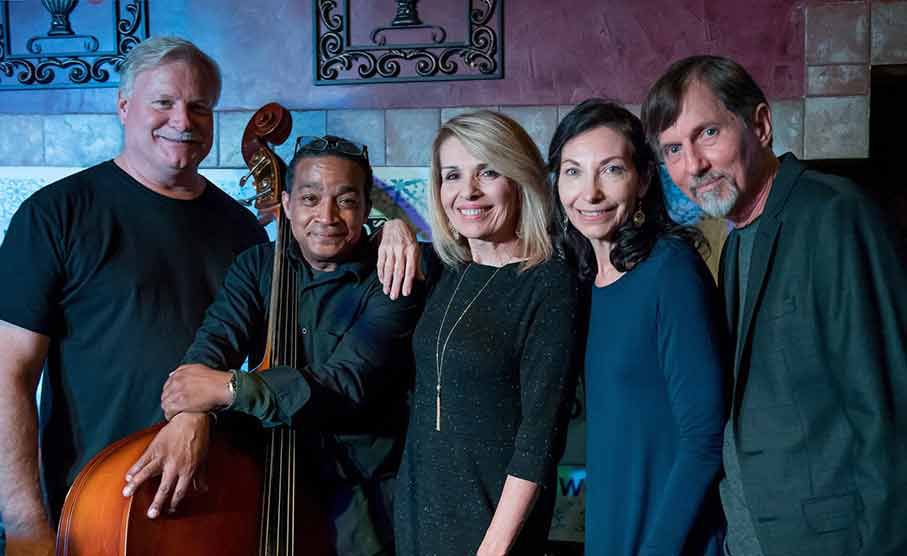 Featuring a female vocalist alongside bass, drums, flute, saxophone, and piano, this quintet delivers a blend of light jazz and blues.