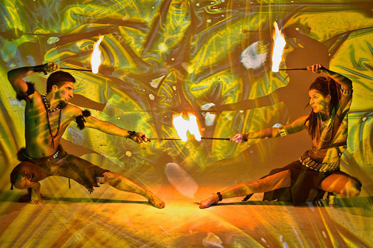 An extraordinary jungle fire dance show that will elevate your event and captivate audiences of all ages with thrilling performances, jungle-themed costumes, and remarkable fire dancers. This tribal theatre experience immerses guests in a jungle atmosphere, packed with exhilarating stunts, tricks, and dances as our fire dancers perform with blazing sticks, clubs, lances, and acrobatic leaps.