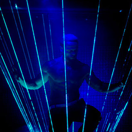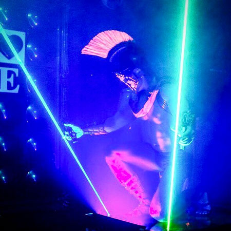 Watch as our laser performer expertly manipulates laser beams with his hands, creating stunning routines that immerse the audience in a vibrant, trendy world.