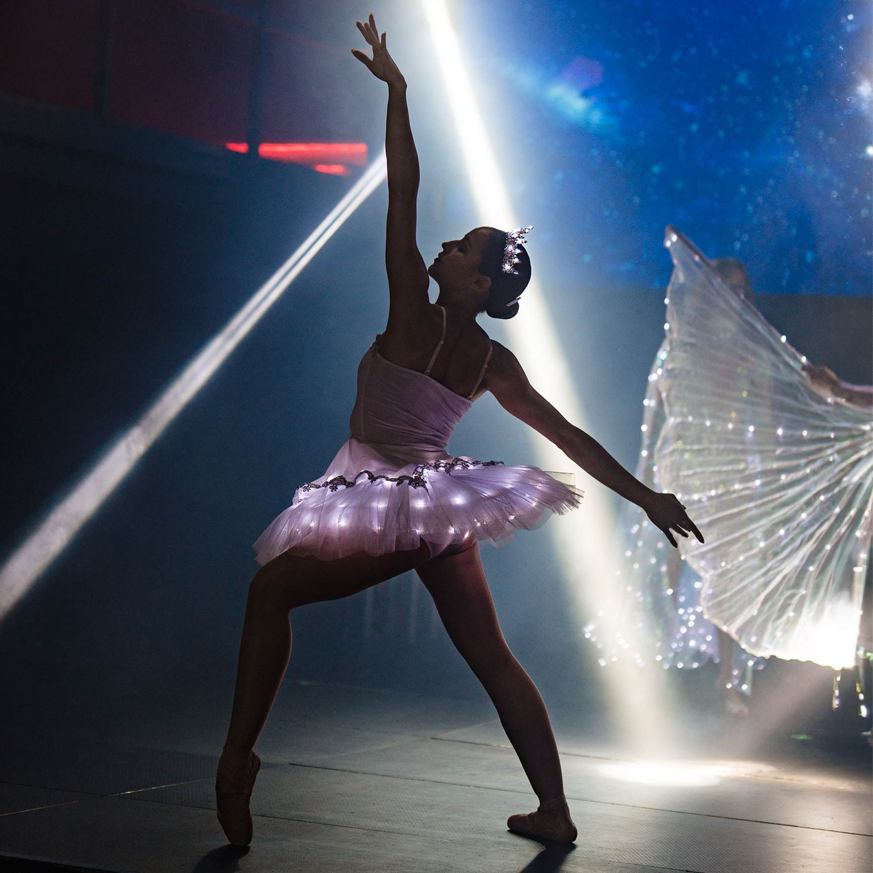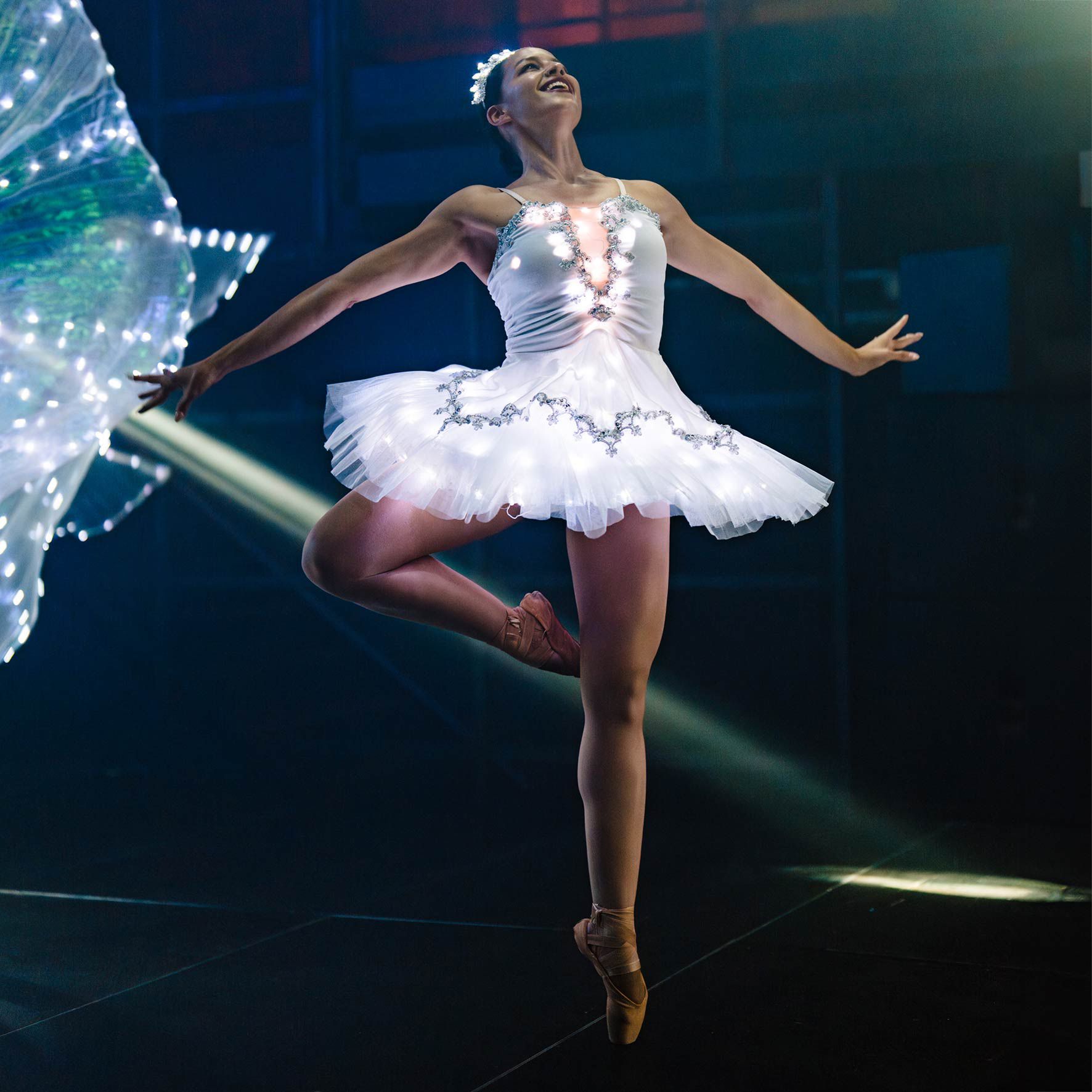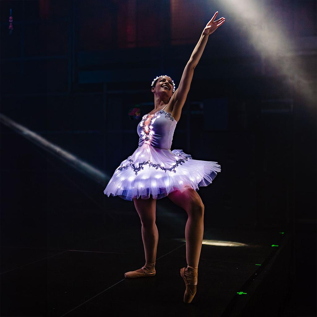 Stunning costumes feature light-up tutus to add a unique and modern touch to the classic beauty of a ballet skirt