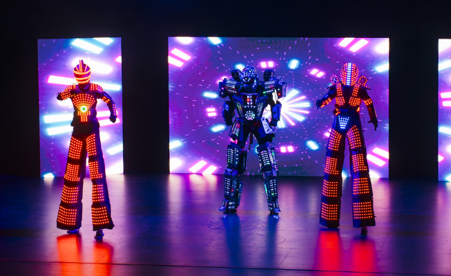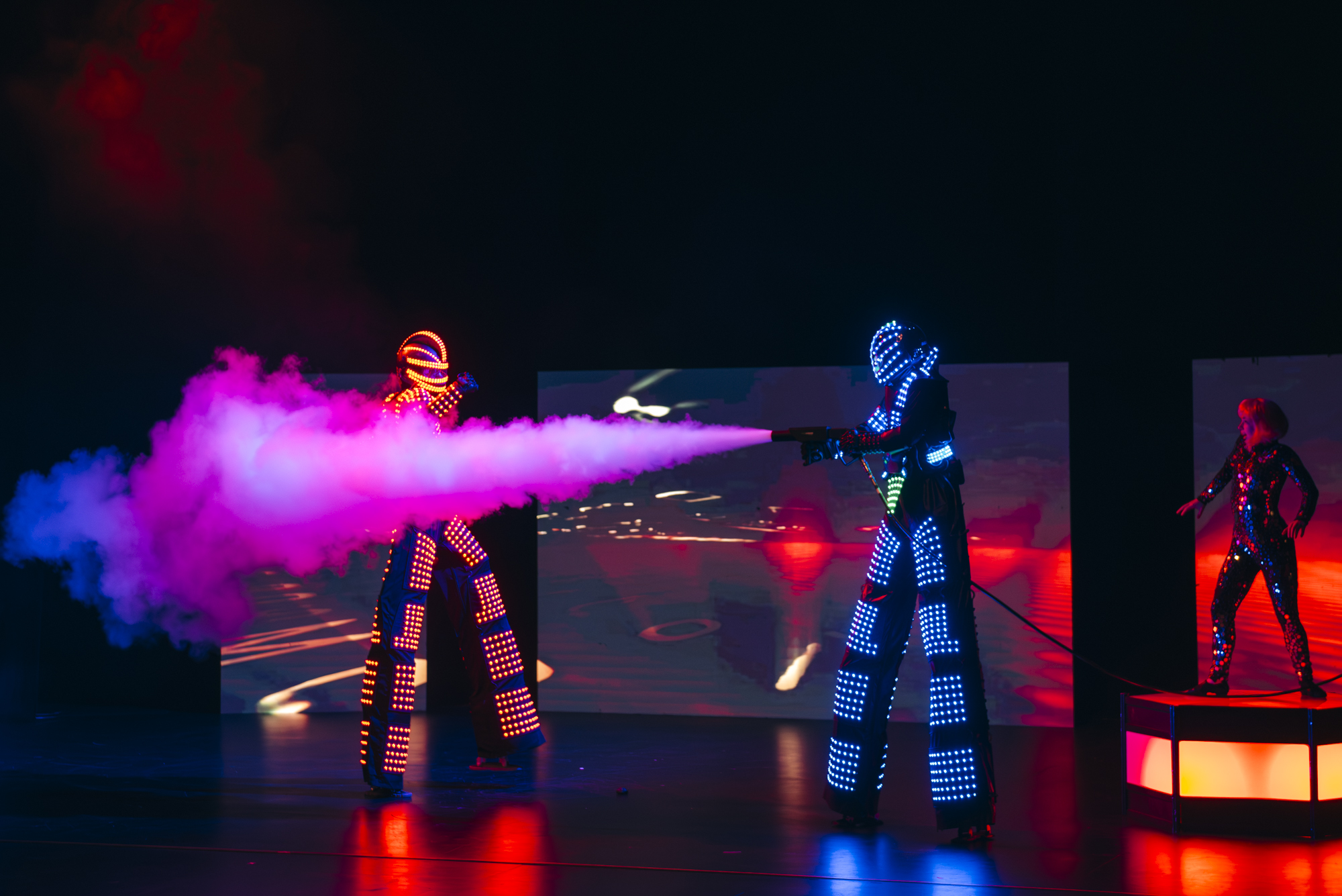 Book this Cirque show and see the only touring LED robot in flight paired with dazzling UV circus acts and high-energy performances