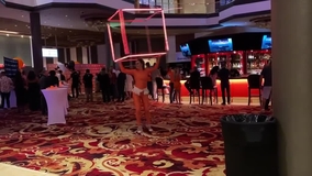 Our artist, a professional dancer, mesmerizes the audience with his graceful moves using the LED cube and pyramid, while also engaging with guests.