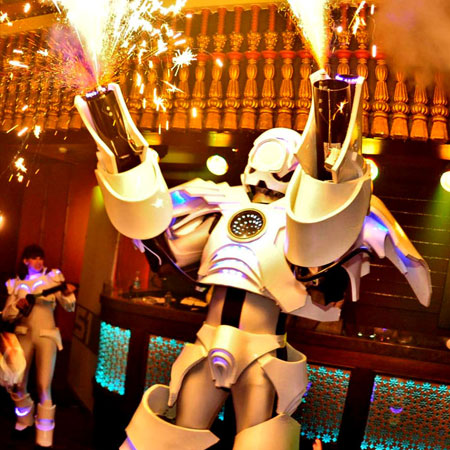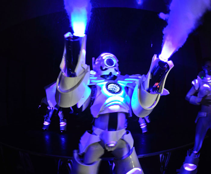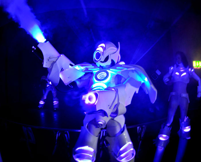 Fully equipped with an arsenal of extraordinary gadgets, this cutting-edge LED act features programmable lasers, CO2 cannons, remote-controlled pyrotechnics, and mesmerizing light effects. Utilizing advanced wireless LED technology, the Megabot is both stylish and interactive. Whether performing a full show or wandering around your event, mingling with guests and posing for photos, our transforming lightweight robot will leave a lasting impression on any occasion! For more information, speak to our entertainment experts at Scarlett Entertainment UK today.