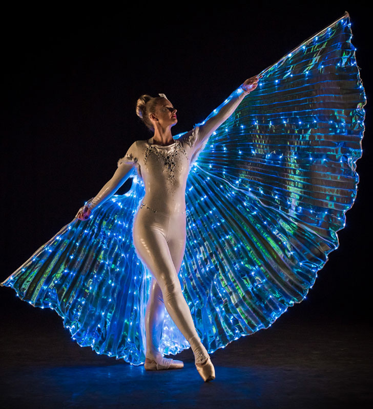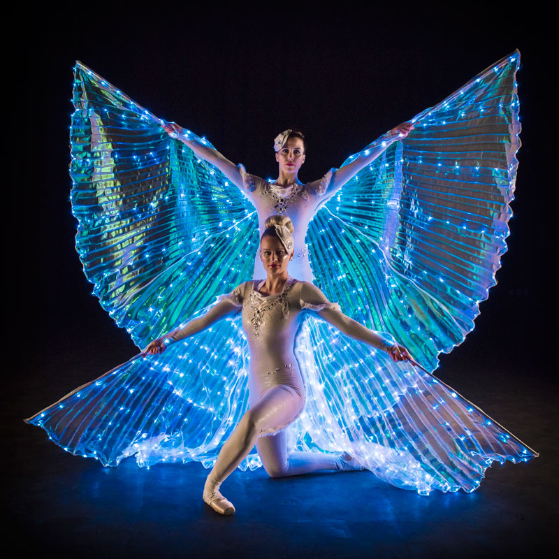 Searching for an enchanting touch for your dance entertainment at your next event? Look no further than our LED Wing Ballerinas, whose magnificent giant wings shimmer with tiny LED lights.