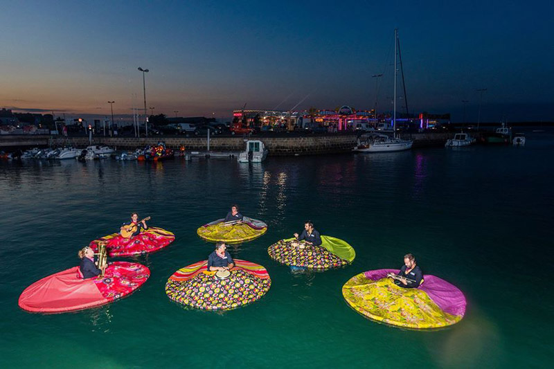 Book this magnificent lily pad orchestra and add a touch of elegance and professionalism to your event with a truly unique twist. Our innovative aqua orchestra performs while floating on water atop giant lily pads! This remarkable floating band will captivate your guests with an exquisite range of Latin and salsa music, all while drifting gracefully on the waters, creating the perfect blend of relaxation and vibrancy.