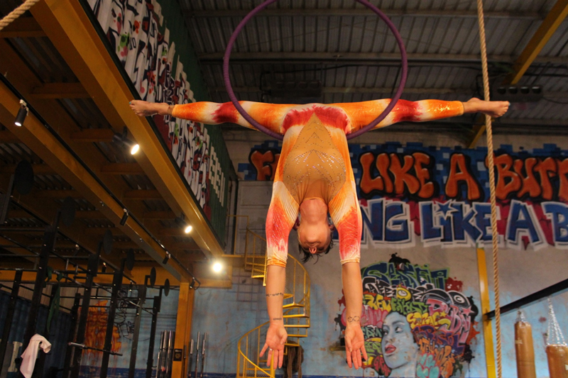 With a background in gymnastics, our artist found a seamless transition into circus arts.