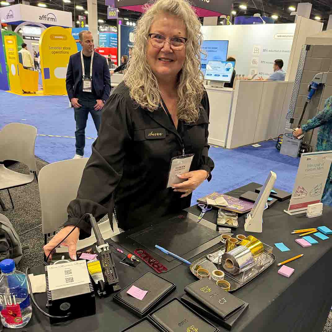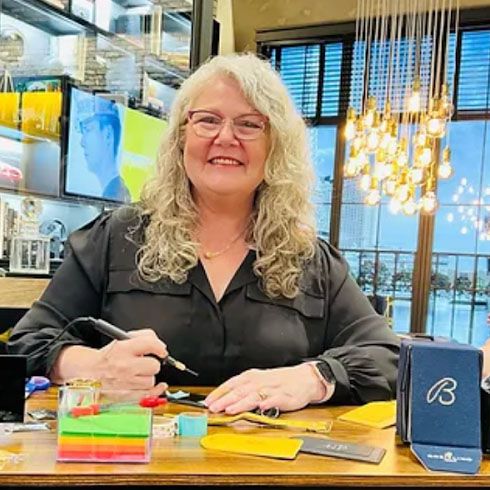 Our Leather Embosser crafts unforgettable moments and treasured keepsakes with her bespoke services.