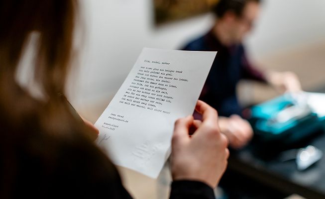 Each poem is inspired by 3 words provided by the guest, thoughtfully tailored to match the mood and available in German, English and basic Italian