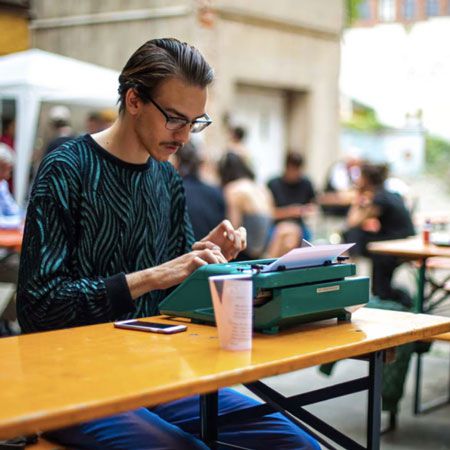 Based in Germany, this live typewriter poet brings a distinctive touch to public, private, and corporate events across the country and Europe