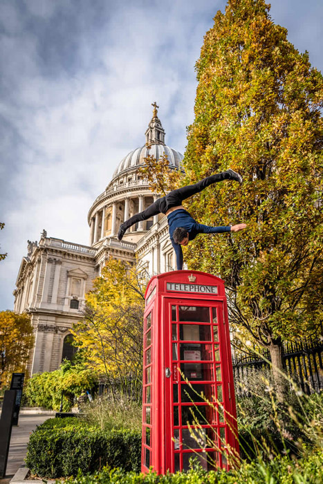 This UK hand balancer also offers lessons in handstands, acrobatics, and body conditioning, making it an excellent activity for corporate clients.