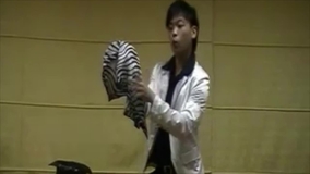His record-holding Card Throwing Trick features an amazing feat of cards being thrown into the air and cutting through various objects placed on the stage.