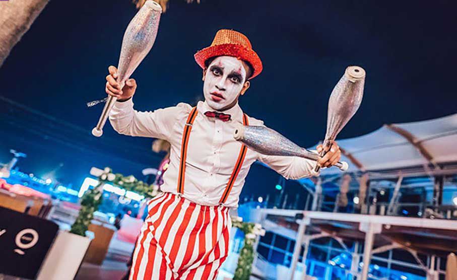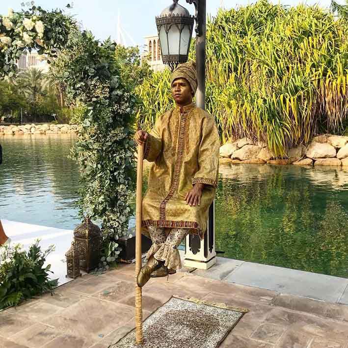 Available as a stationary or floating living statue, our cirque artist creates fantastic photo opportunities for themed events throughout the Middle East.