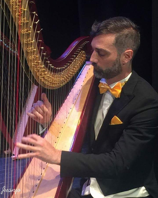 Versatile and highly sought-after harpist, acclaimed for his adaptability, is a popular musician in Spain, catering to various types of events.