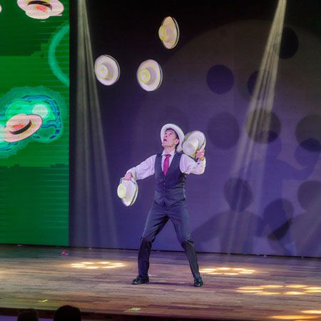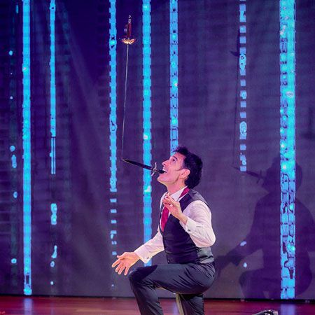 Our expert circus juggler can also perform his juggling routine on ice skates, adding a unique touch to ice shows. Contact our entertainment specialists today to learn more.