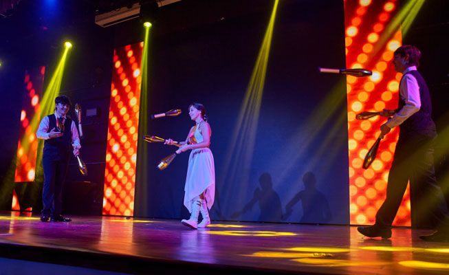 Charismatic and highly comedic, our outstanding juggler is guaranteed to be a hit at your event, making it stand out among the best. Offering a vibrant live circus show for festivals and theatres, our juggling act also provides top-tier corporate entertainment for awards ceremonies, gala dinners, and conferences.