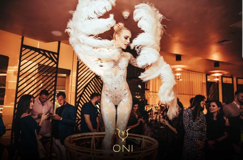Available for various themed events such as Arabian, burlesque, contemporary glamour, and 1920s feather themed