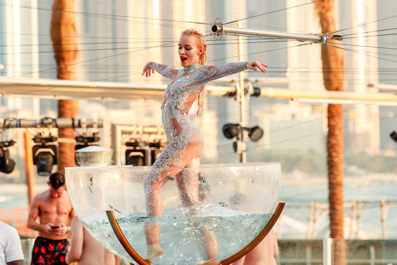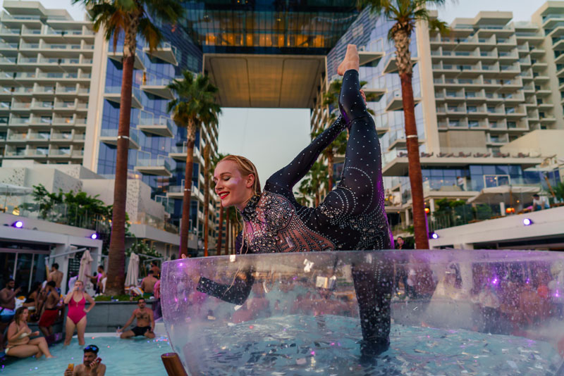 Our exclusive martini glass performance will captivate guests with its graceful artistry, diverse costume transitions, and unique props.