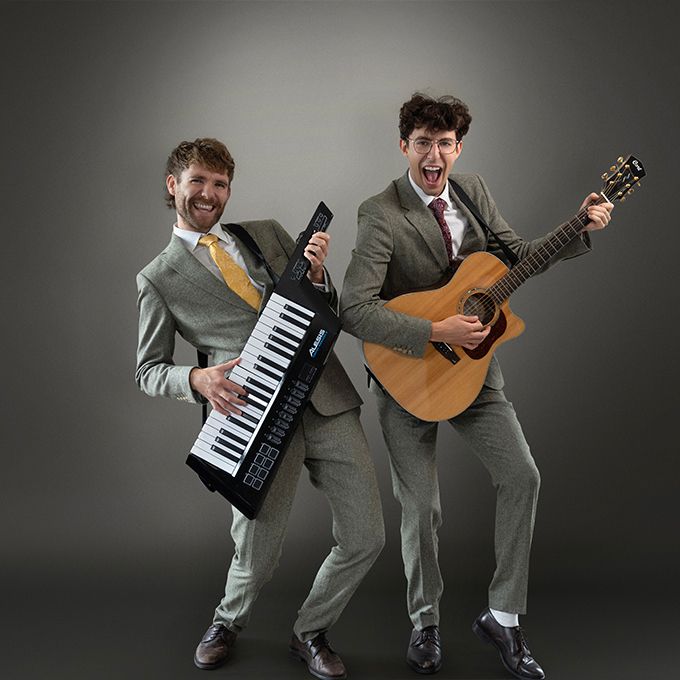 Our duo showcases their remarkable vocal talent and outstanding multi-instrumental abilities through unique renditions of popular party hits.